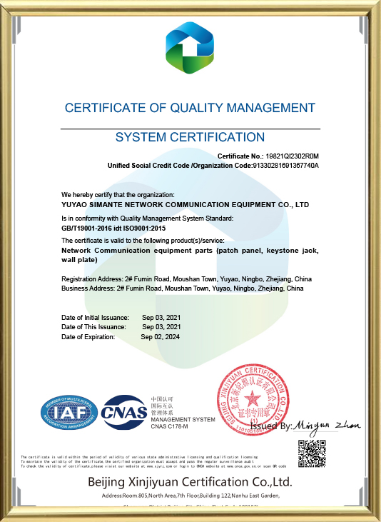 ইউইয়াও সিমান্তে নেটওয়ার্ক কমিউনিকেশন ইকুইপমেন্ট কোং লিমিটেড হল স্ট্রাকচার্ড ক্যাবলিং সলিউশন এবং ফাইবার অপটিক পণ্যের একটি পেশাদার প্রস্তুতকারক, যা নকশা, উন্নয়ন, বিক্রয় এবং পরিষেবা একীভূত করে।