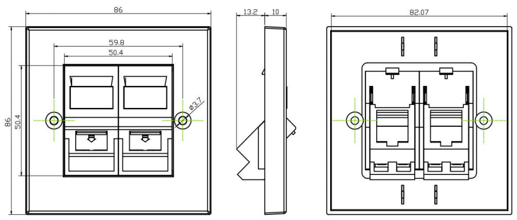 মাল্টিমিডিয়া সংযোগগুলি: মাল্টিমিডিয়া পোর্ট সহ ফেসপ্লেটগুলি অডিও, ভিডিও এবং কনফারেন্স রুম, মাল্টিমিডিয়া কেন্দ্র বা শিক্ষামূলক সুবিধার মতো অঞ্চলে সংযোগ সরবরাহ করতে ব্যবহৃত হয়। তারা বিভিন্ন ডিভাইস সংযোগ এবং যোগাযোগ এবং সহযোগিতার সুবিধার্থে একটি কেন্দ্রীয় এবং সংগঠিত সমাধান সরবরাহ করে।