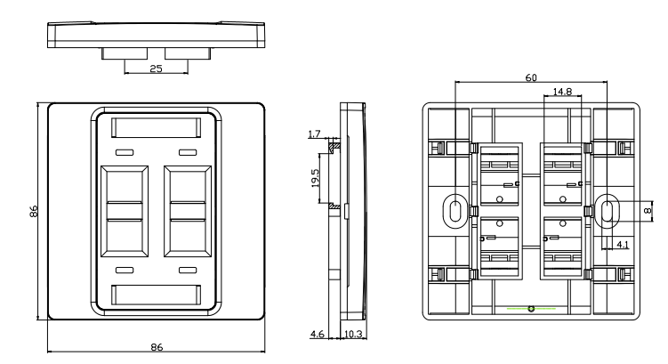 একটি 4 পোর্ট ফেসপ্লেট ব্যবহার একটি নির্দিষ্ট স্থানে একাধিক সংযোগ পরিচালনার জন্য একীভূত এবং সংগঠিত পদ্ধতির জন্য অনুমতি দেয়, তারের বিশৃঙ্খলা হ্রাস করে এবং ইনস্টলেশন এবং রক্ষণাবেক্ষণ প্রক্রিয়াটিকে সহজতর করে। এটি সাধারণত আবাসিক, বাণিজ্যিক এবং শিল্প সেটিংসে ব্যবহৃত হয় যেখানে একাধিক সংযোগগুলি অ্যাক্সেস করা এবং দক্ষতার সাথে পরিচালনা করা প্রয়োজন।
